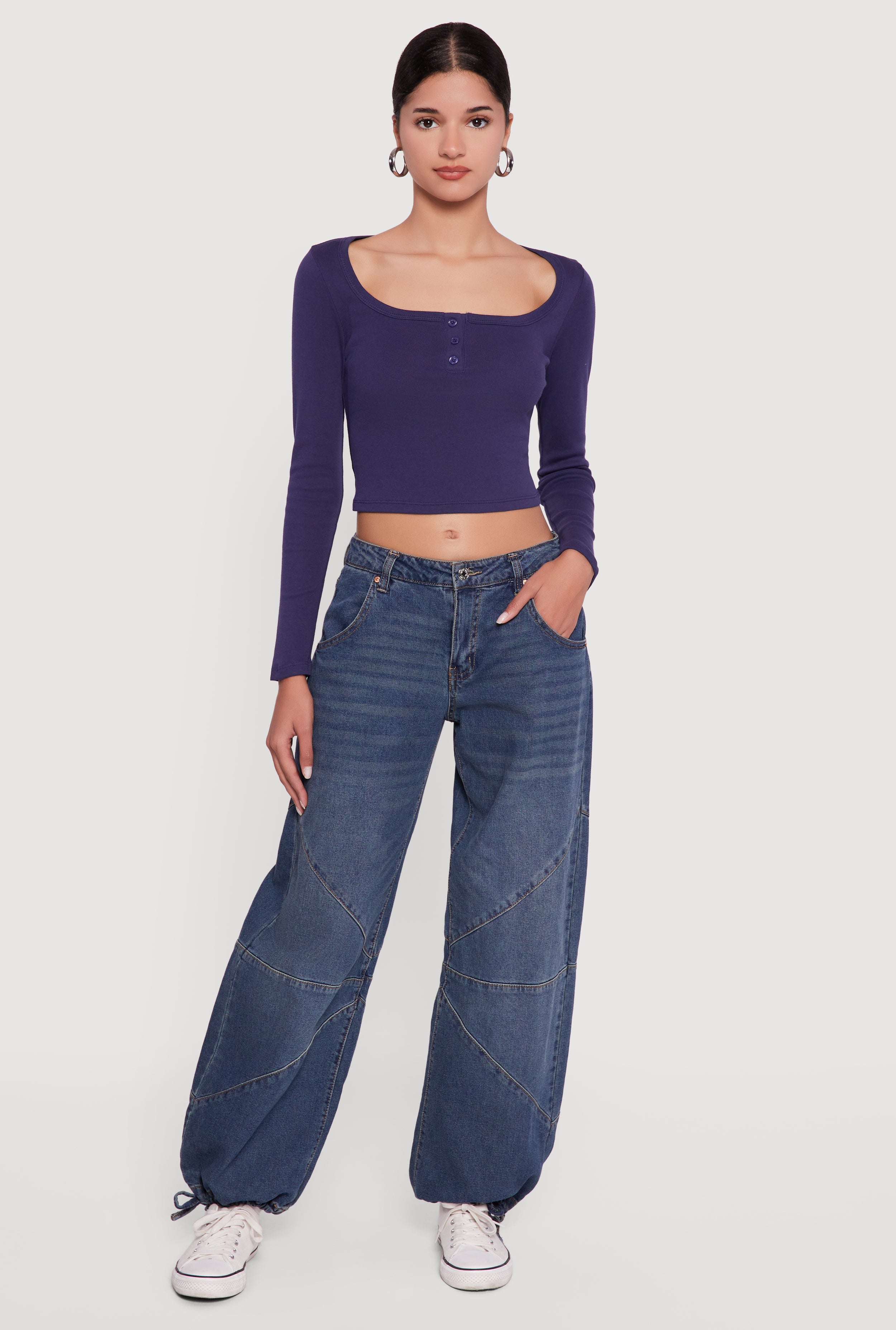 Henley Long Sleeve Crop Top