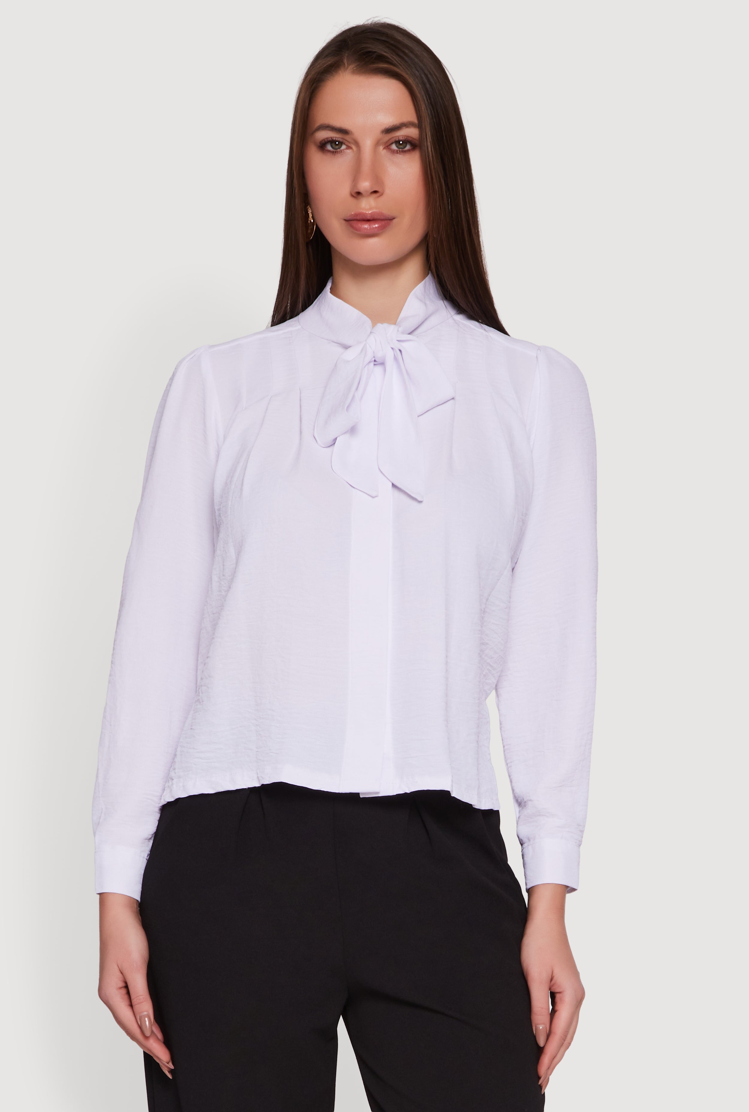 Crepe Knit Tie Neck Button Front Shirt