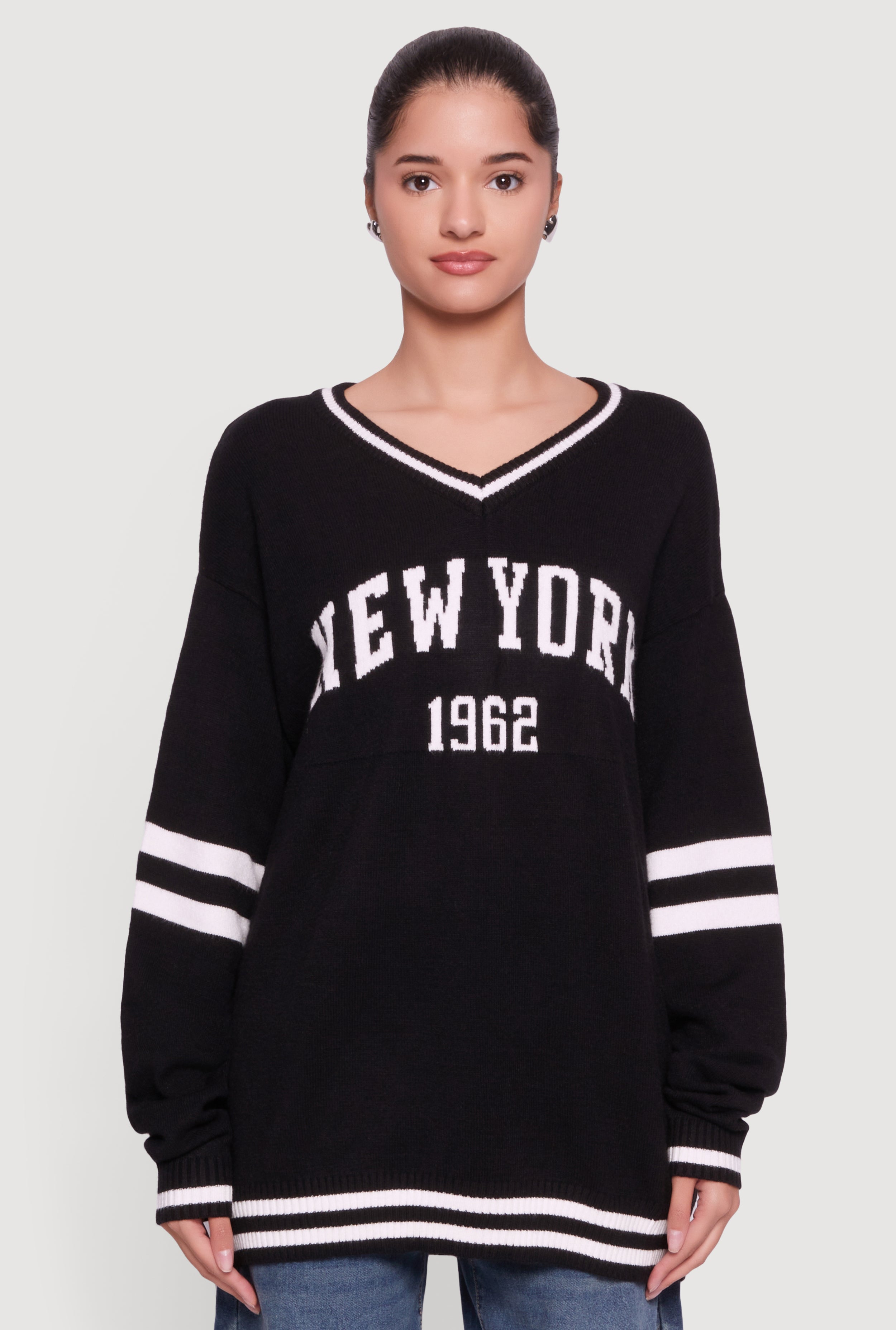 97 Graphic Varsity Stripe V-Neck Sweater