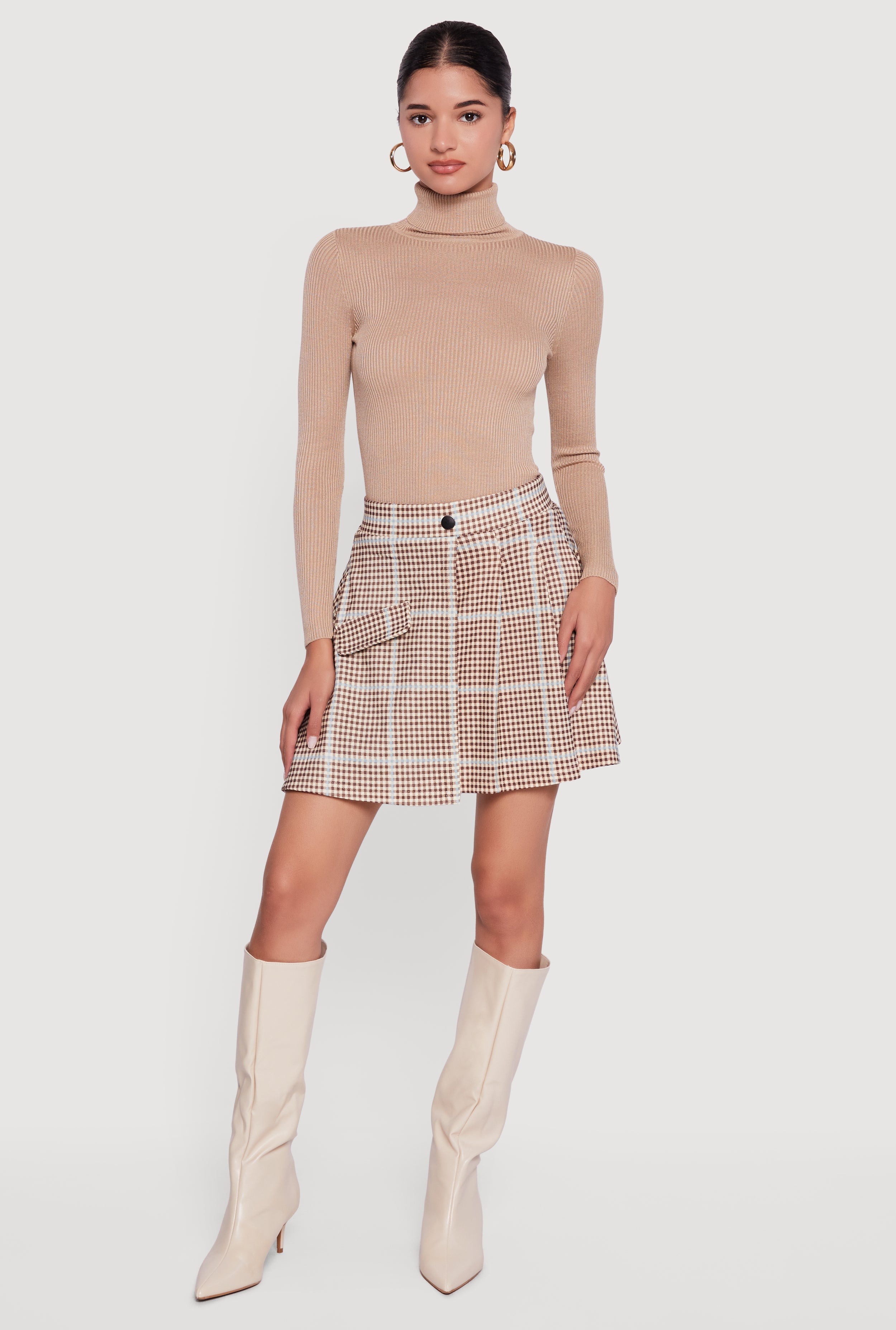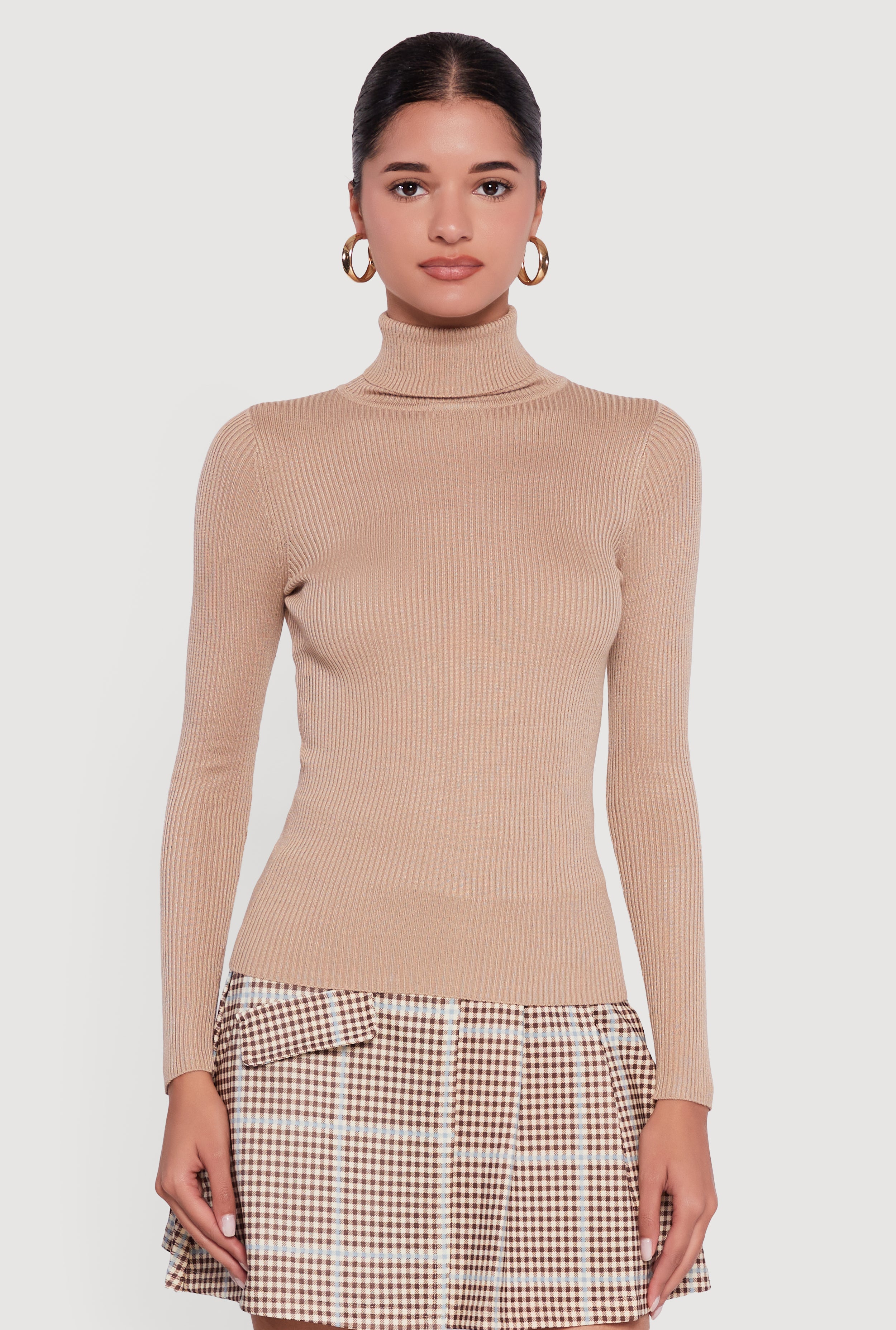 Solid Ribbed Knit Turtleneck Top