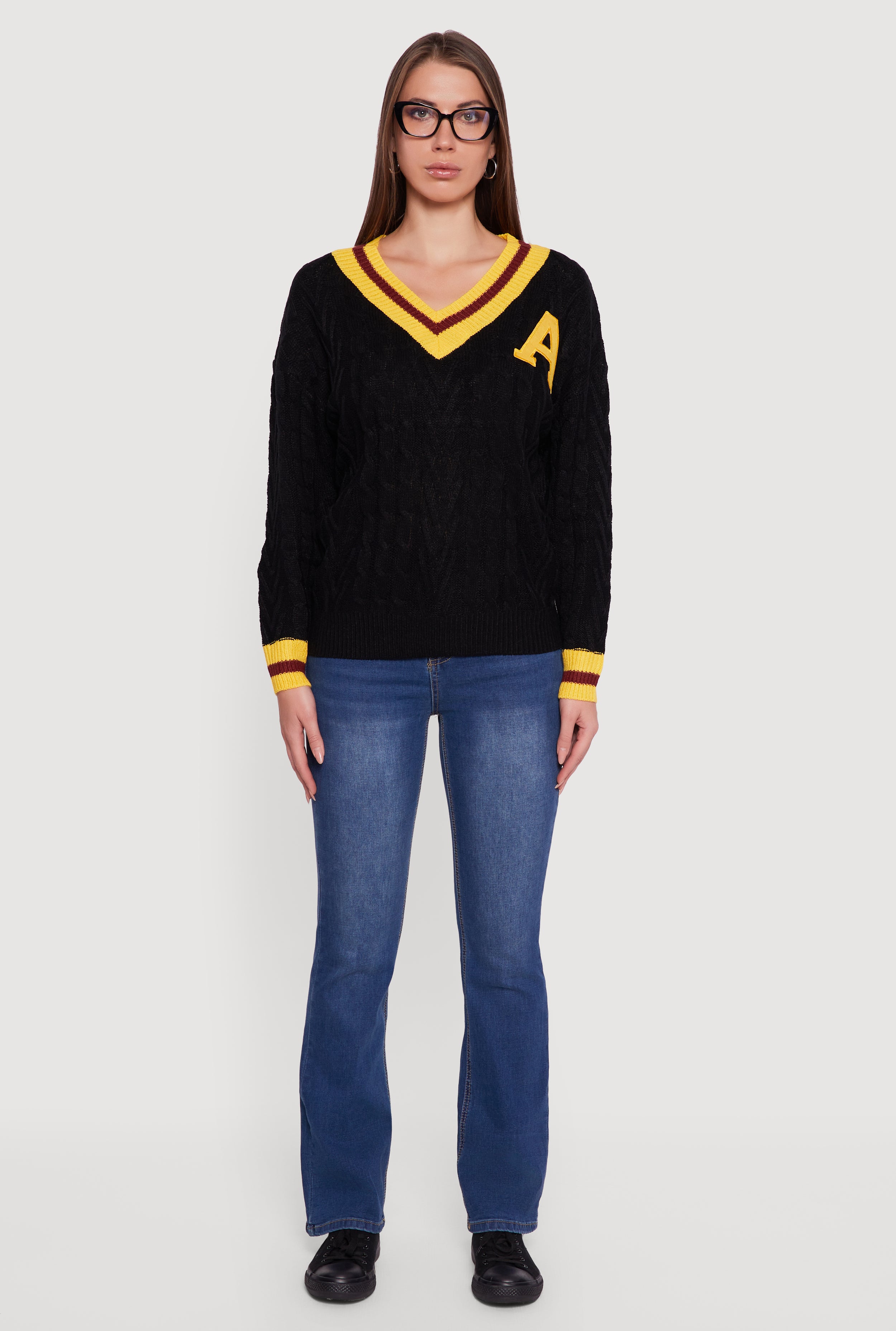Cable Knit Varsity Stripe Sweater