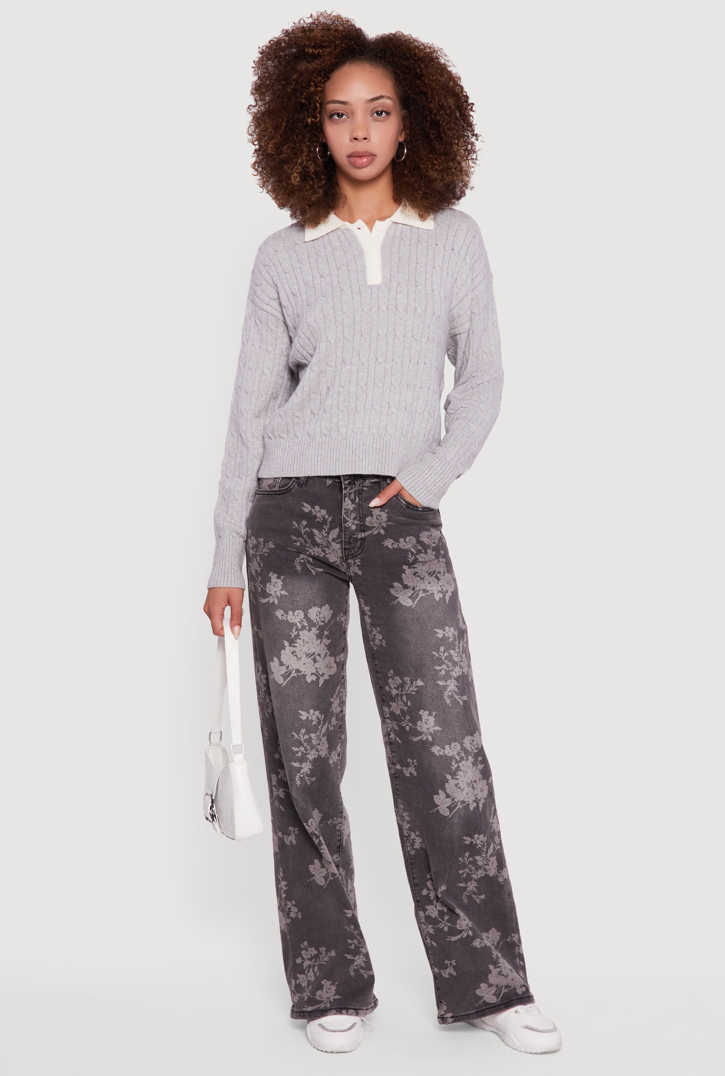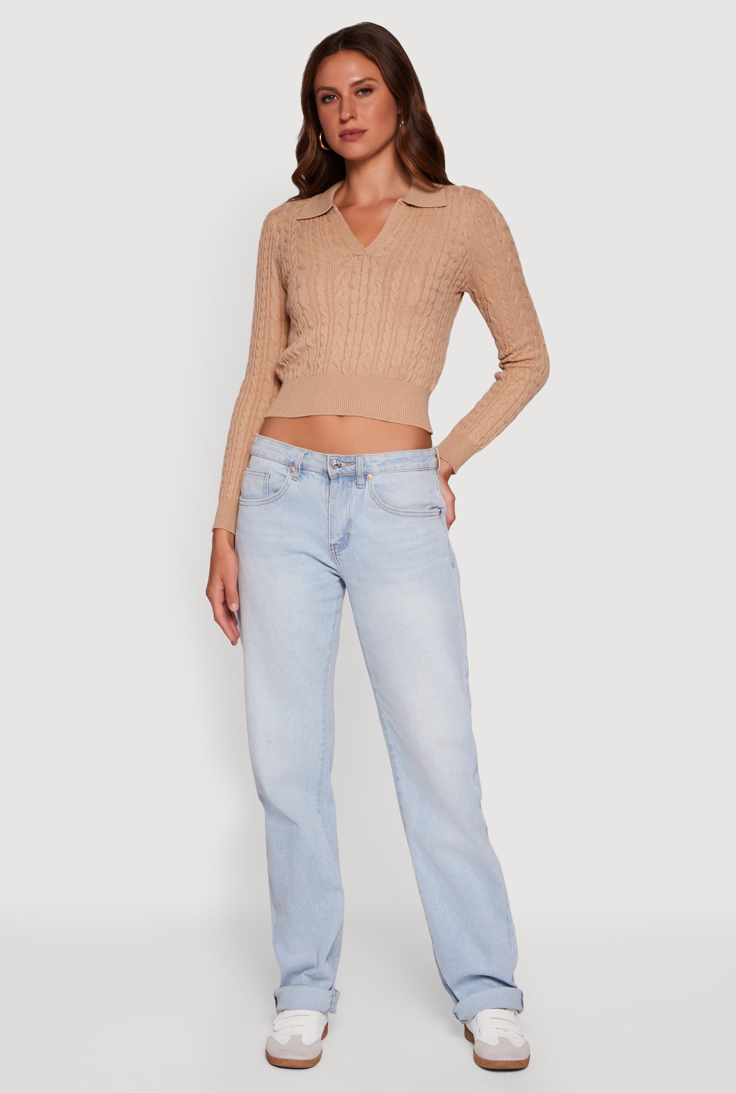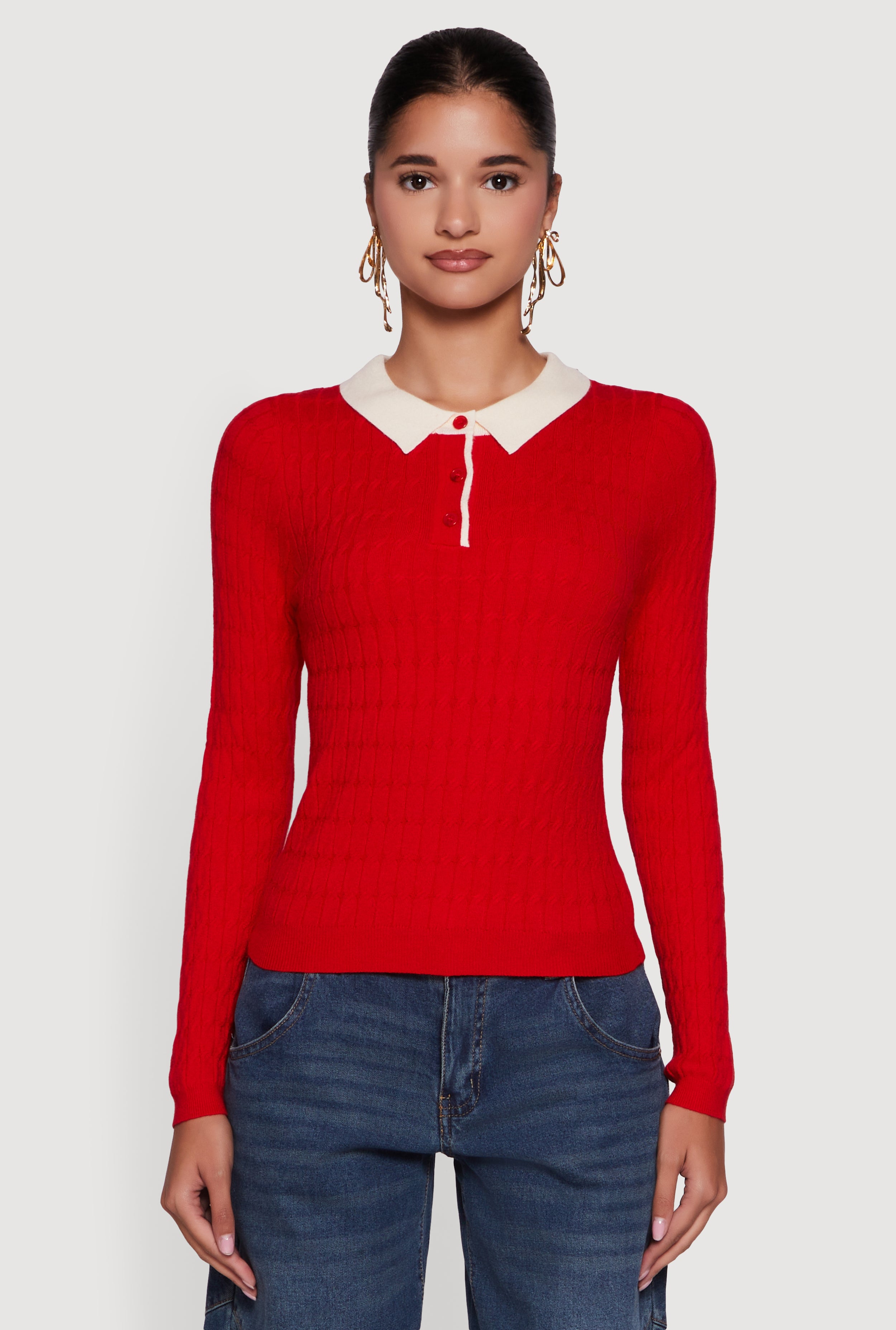 Long Sleeve Cable Knit Polo Sweater