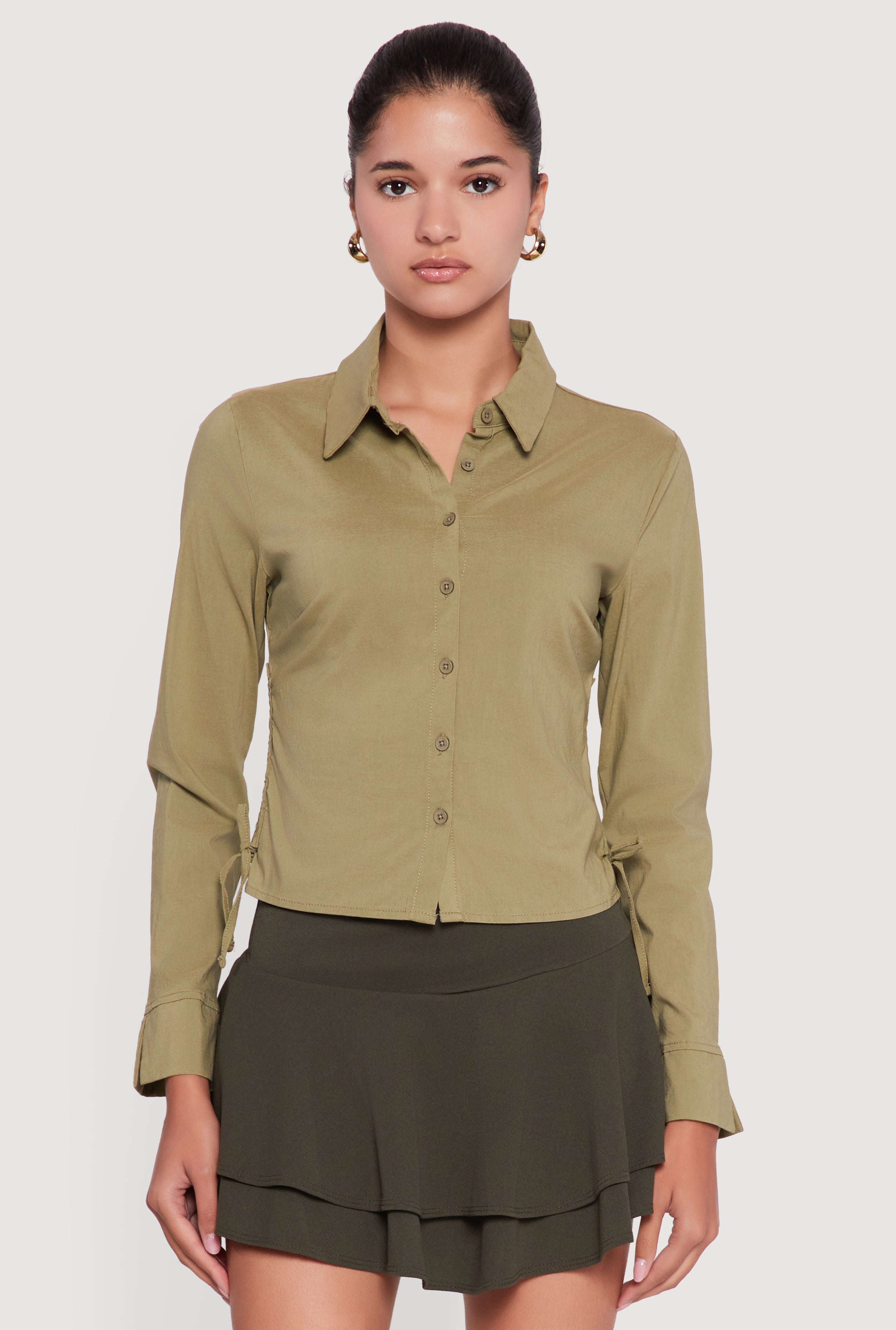 Side Tie Long Sleeve Button Front Shirt