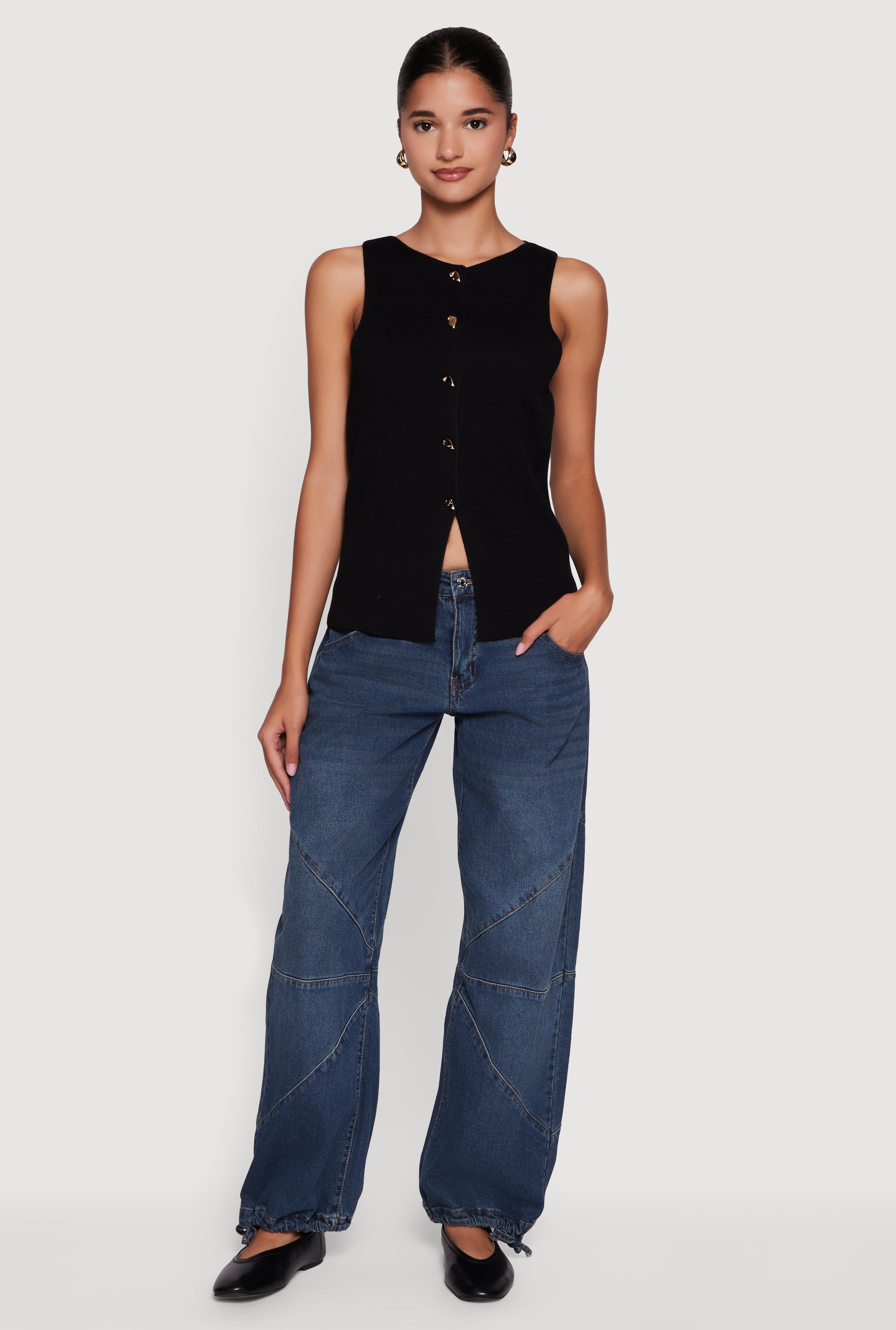 Metallic Button Front Sleeveless Sweater