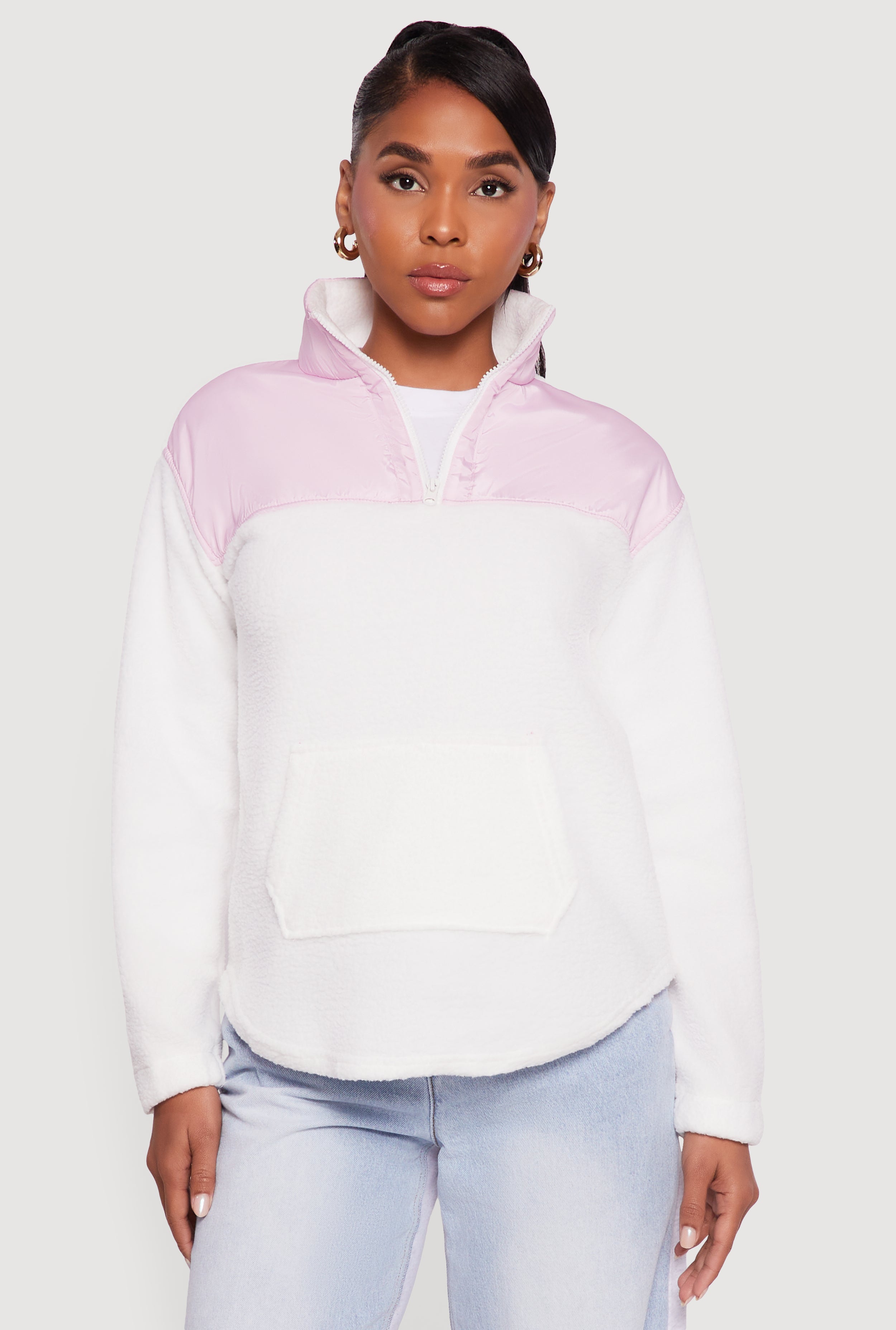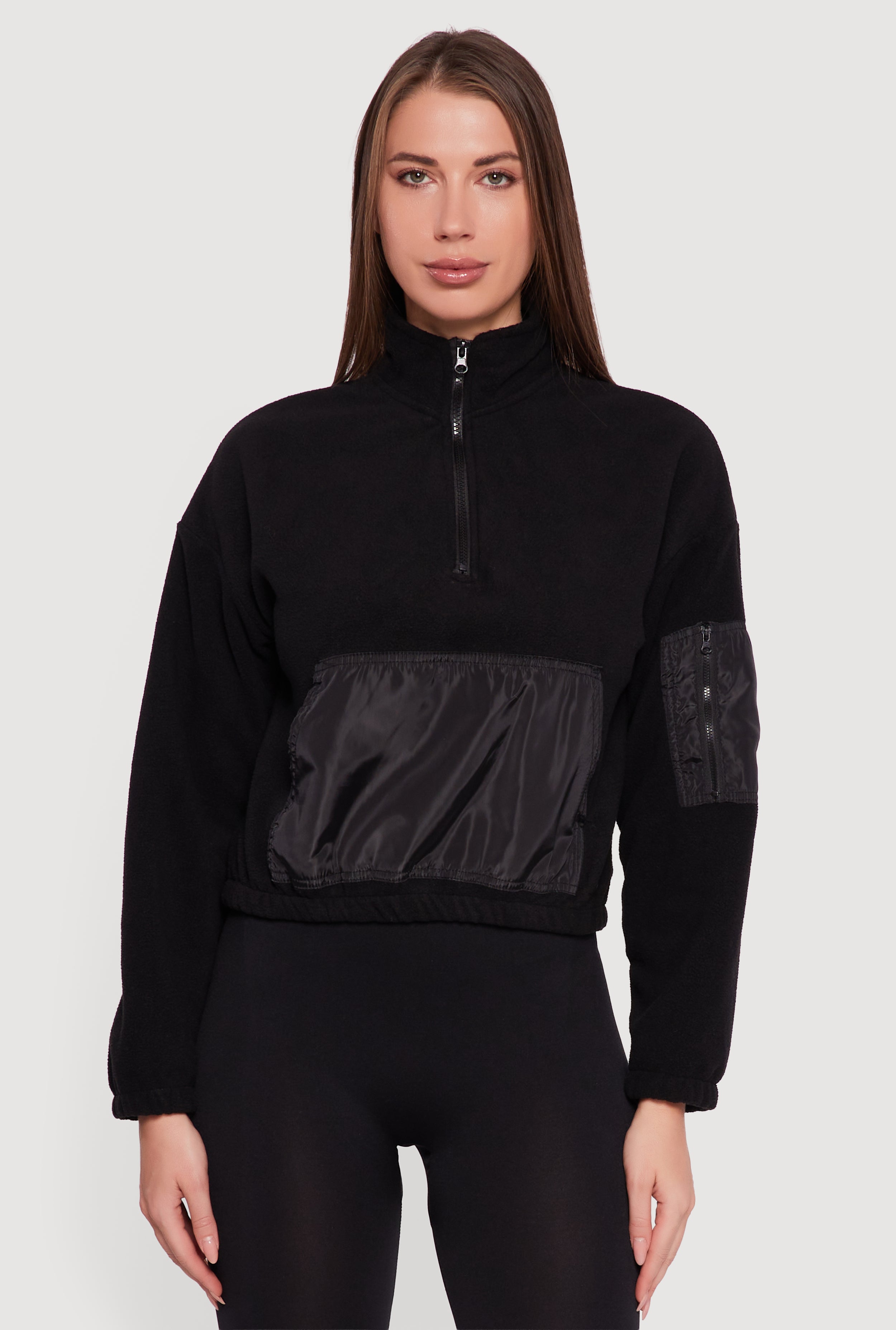 Nylon Detail Zip Front Fleece Sweatshirt