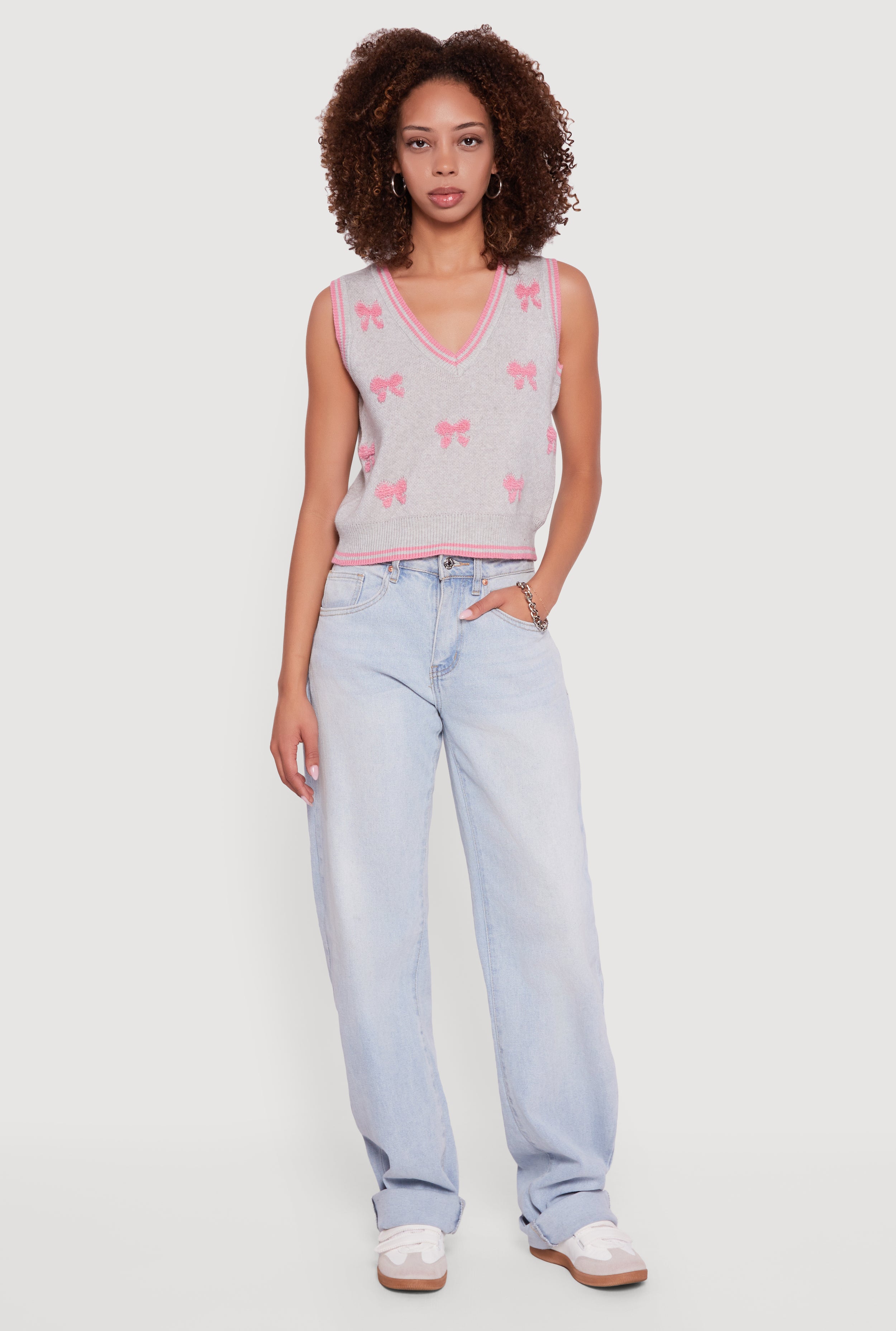 Chenille Bow Print V-Neck Sweater Vest