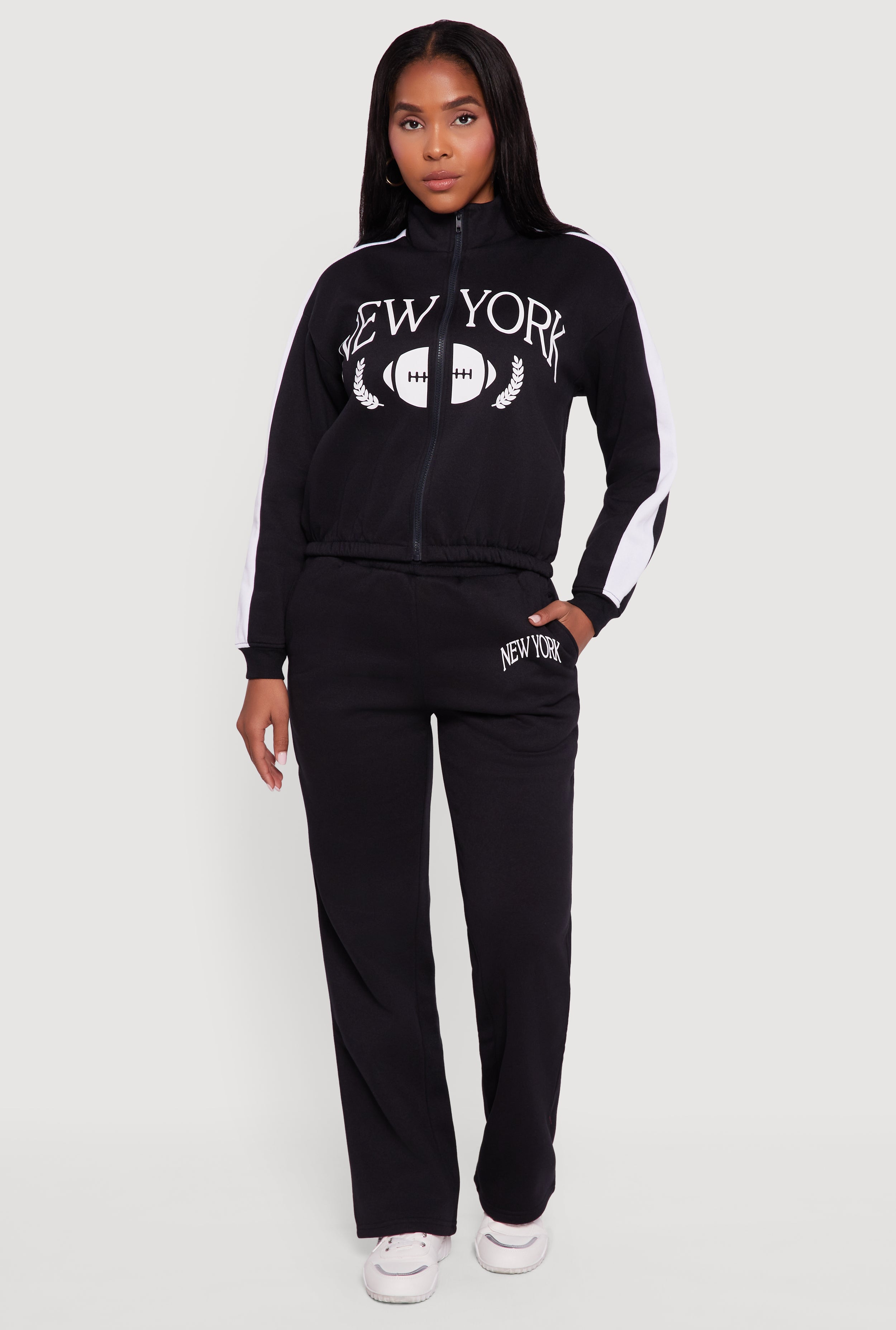 Side Stripe Zip Front Graphic Sweatshirt