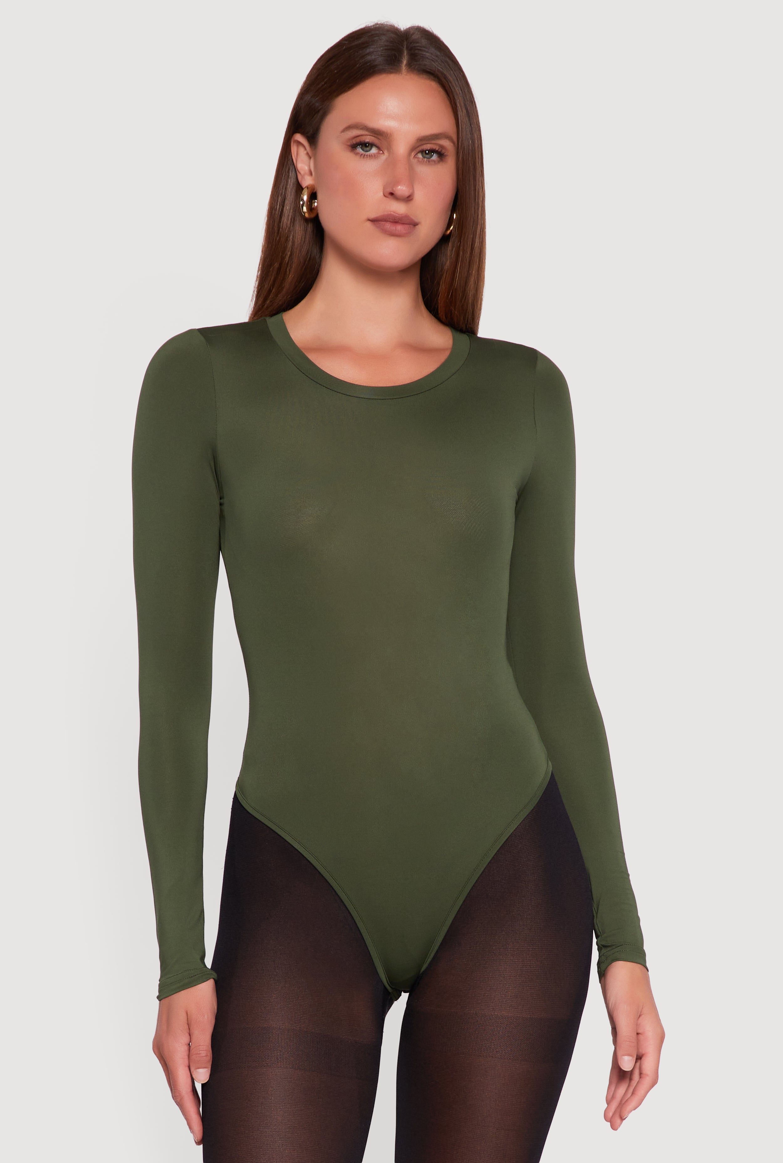 Basic Curve Hugging Long Sleeve Crew Neck Bodysuit