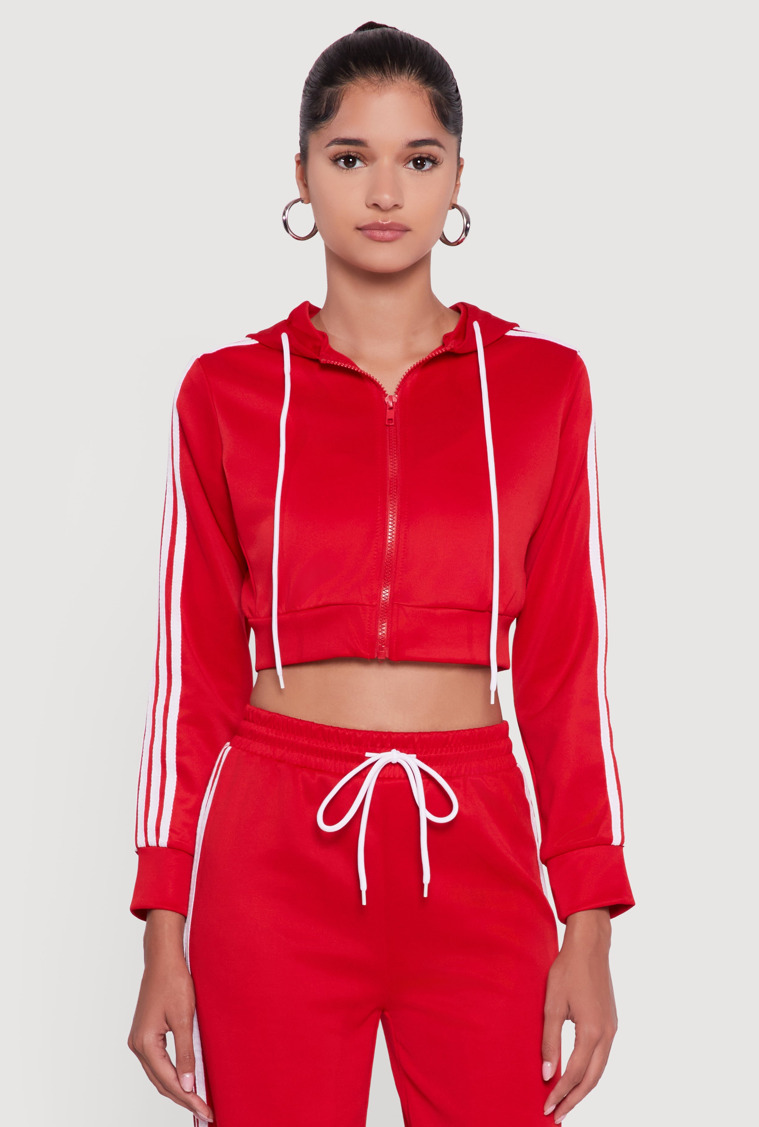 Contrast Trim Hooded Zip Front Cropped Hoodie