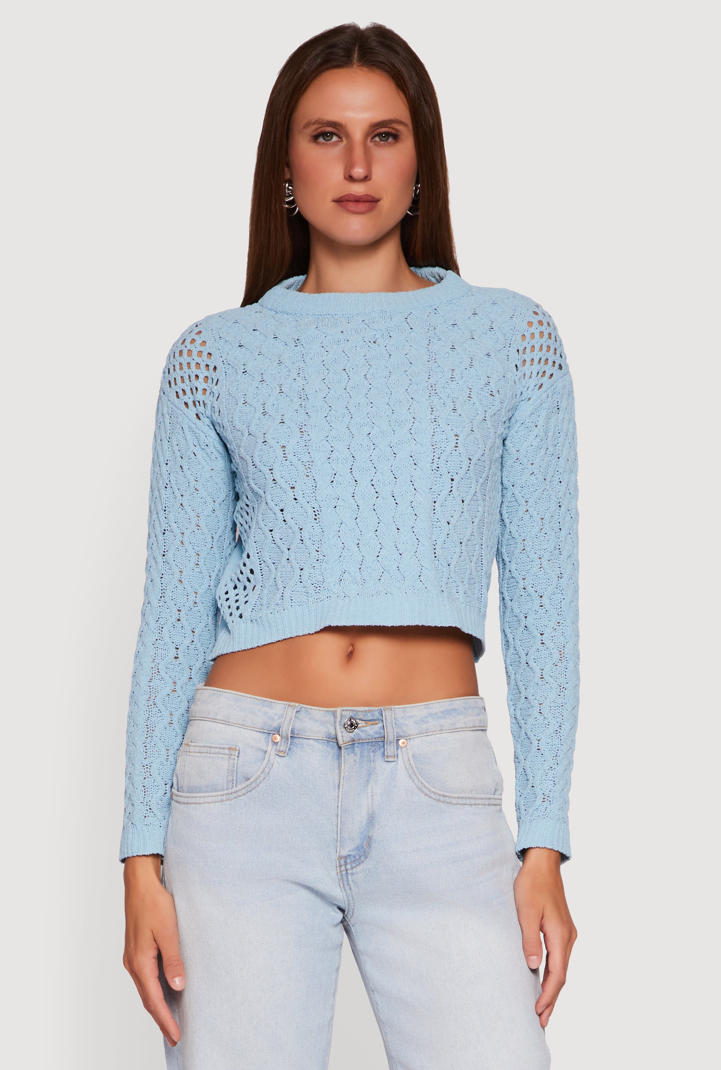 Long Sleeve Cable Knit Cropped Sweater