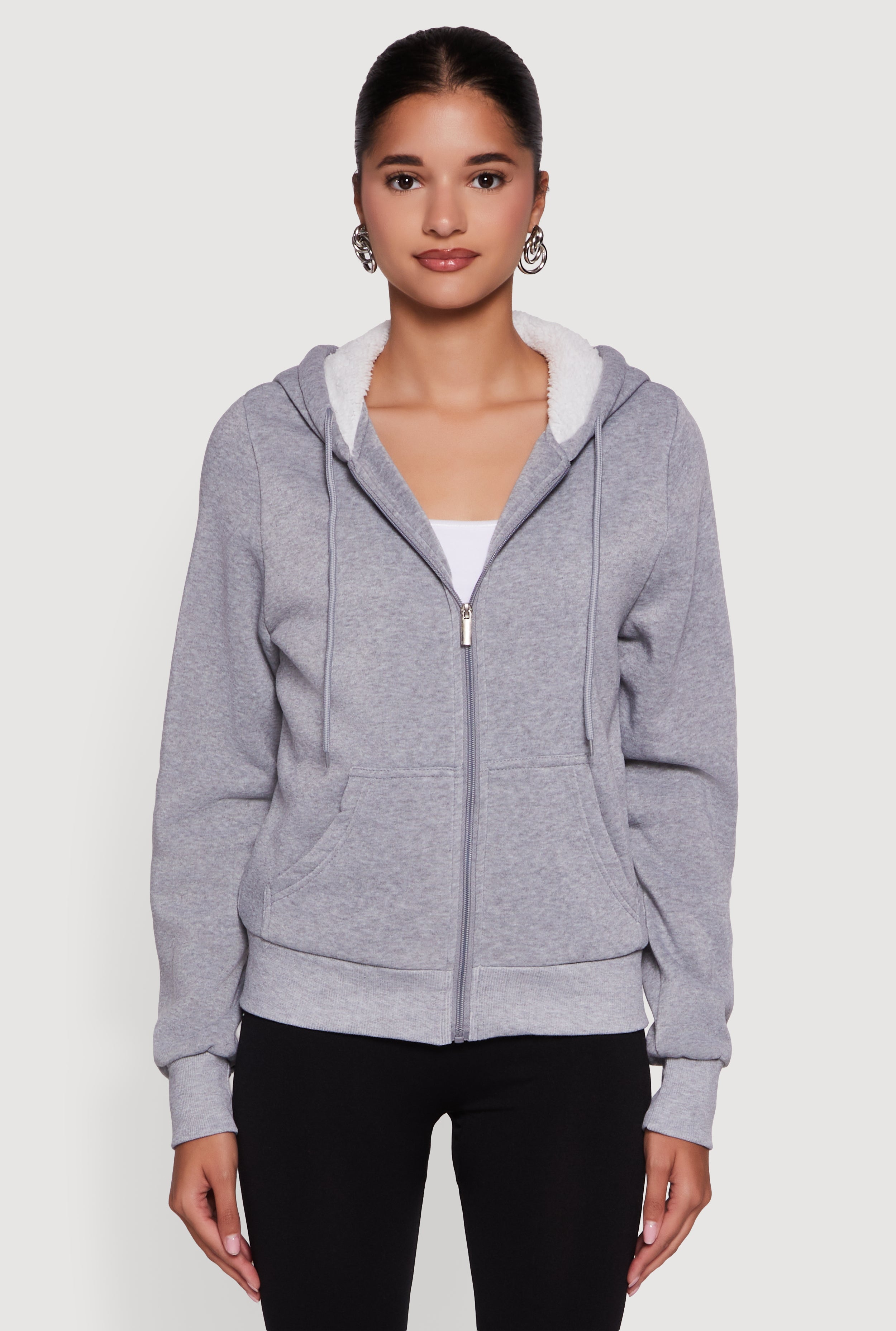 Cozy Sherpa Lined Hooded Zip Front Sweatshirt