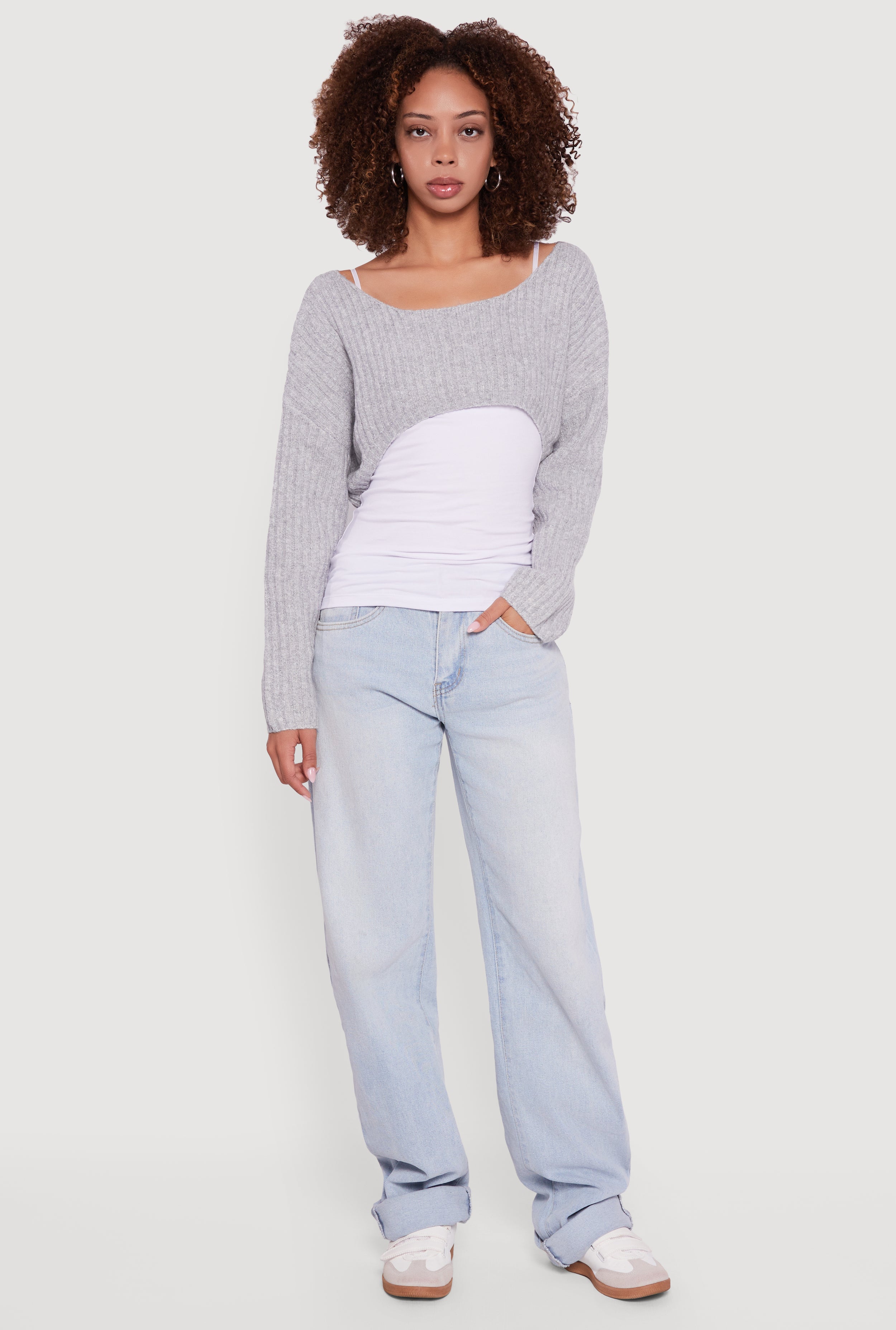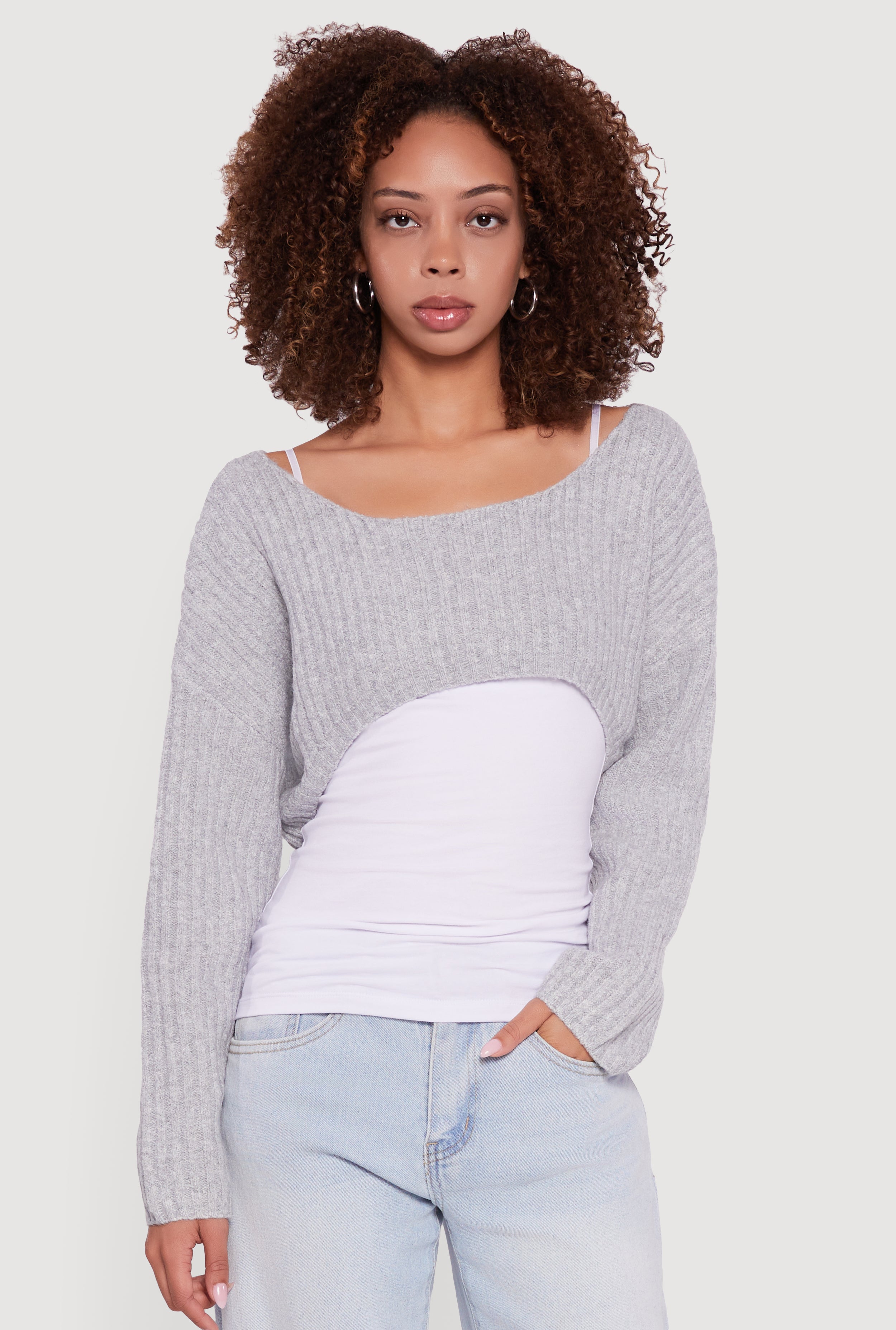 Brushed Rib Knit Boat Neck Shrug