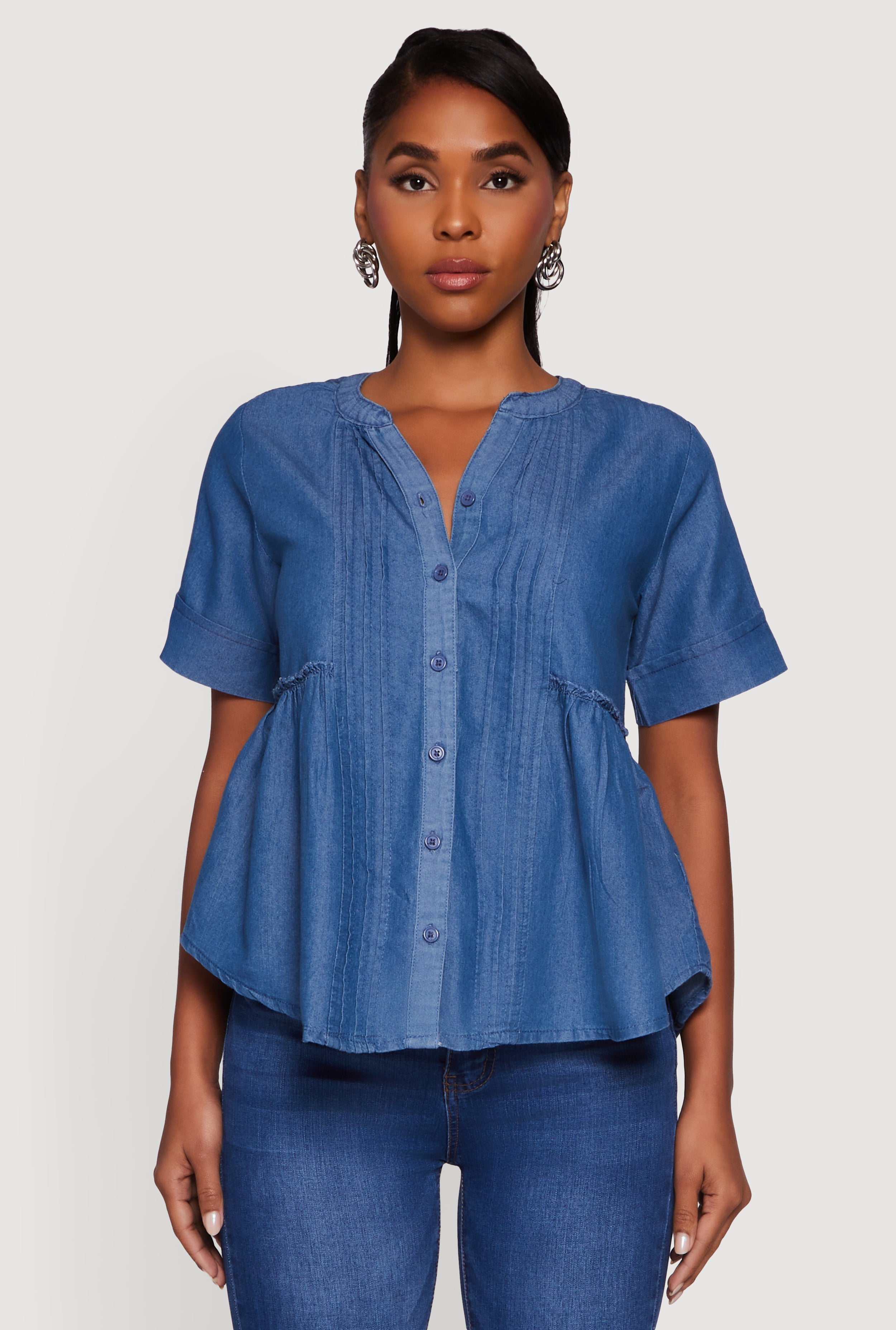Chambray Notch Neck Button Front Shirt