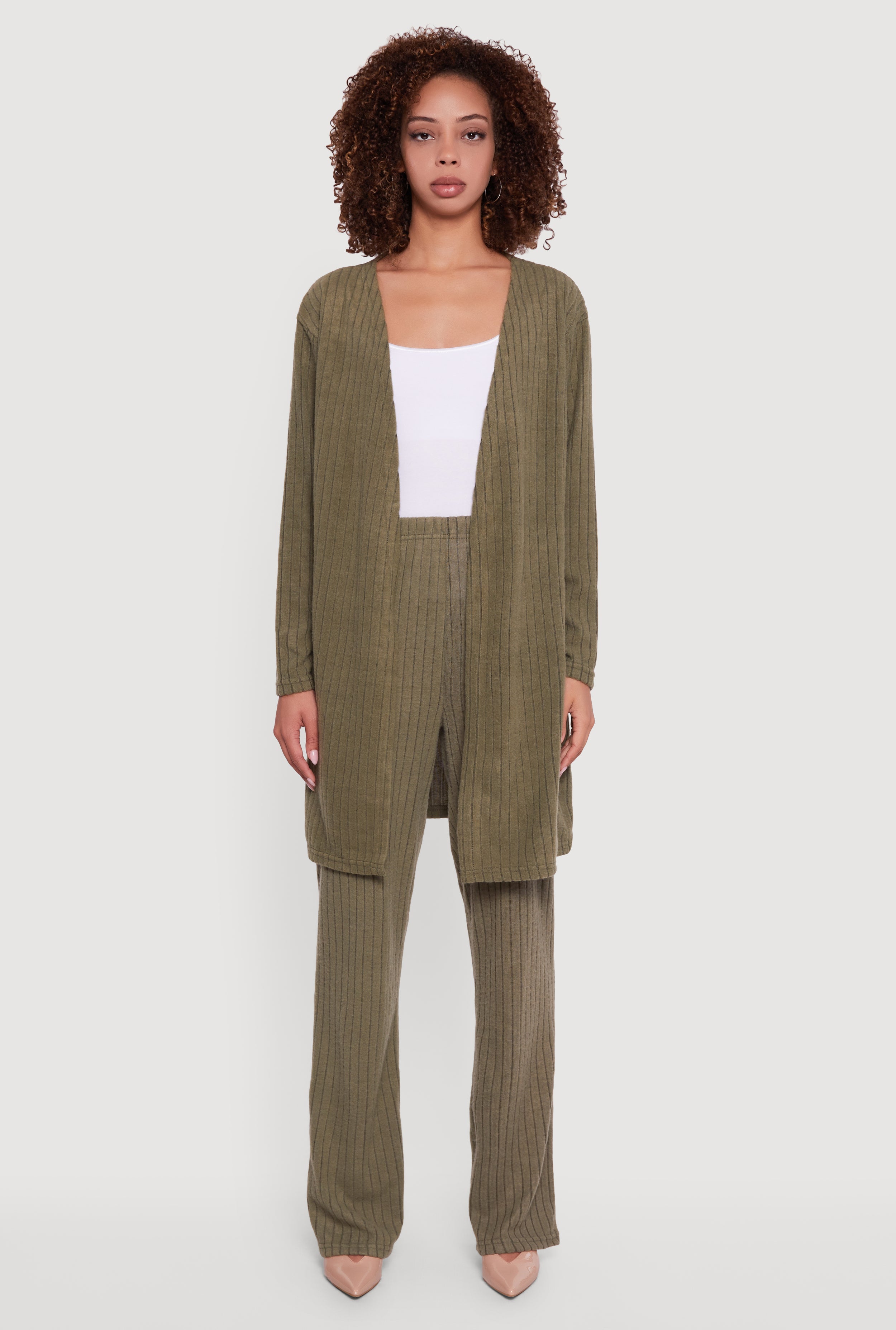 Brushed Ribbed Knit Long Sleeve Duster