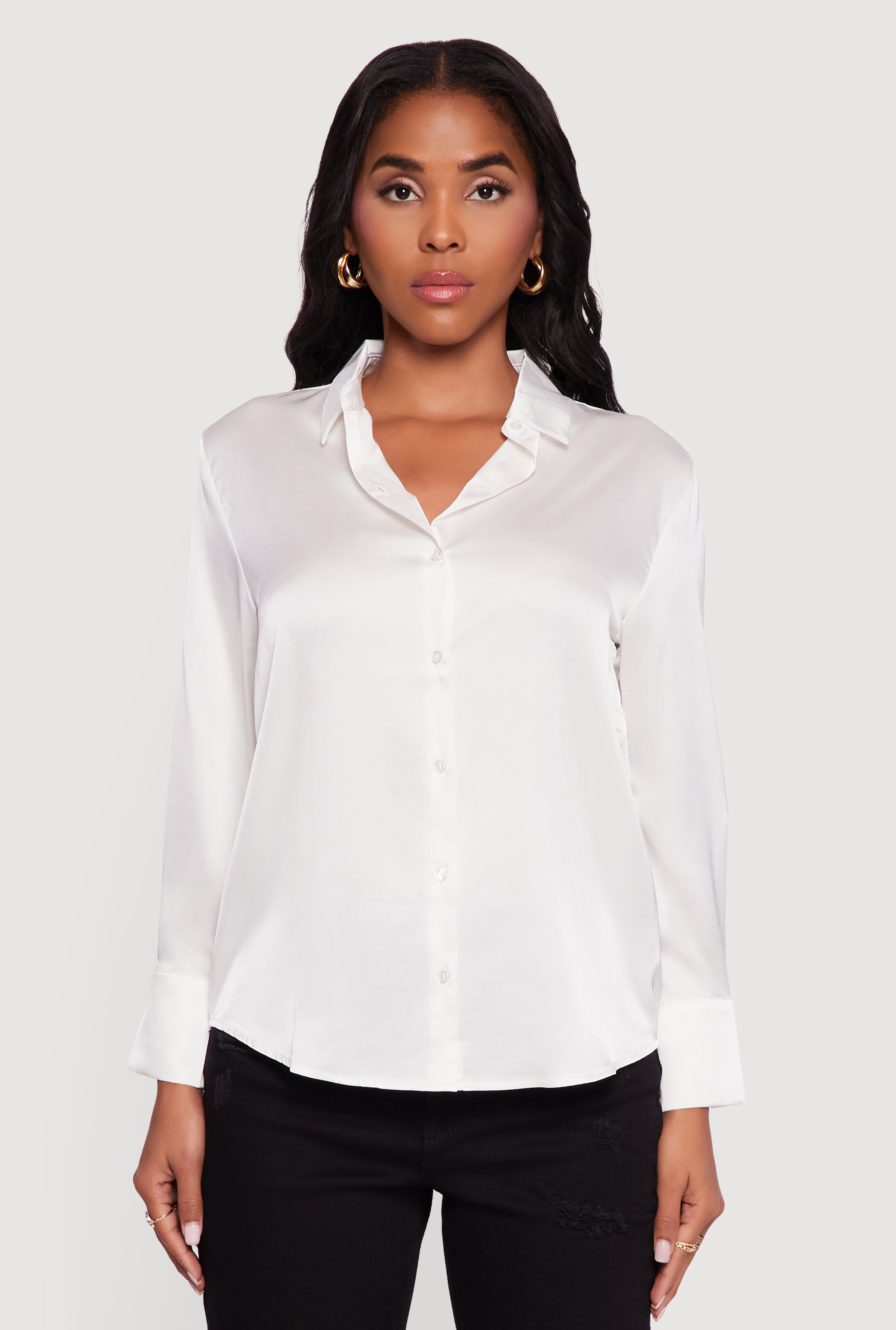 Satin Long Sleeve Button Front Shirt